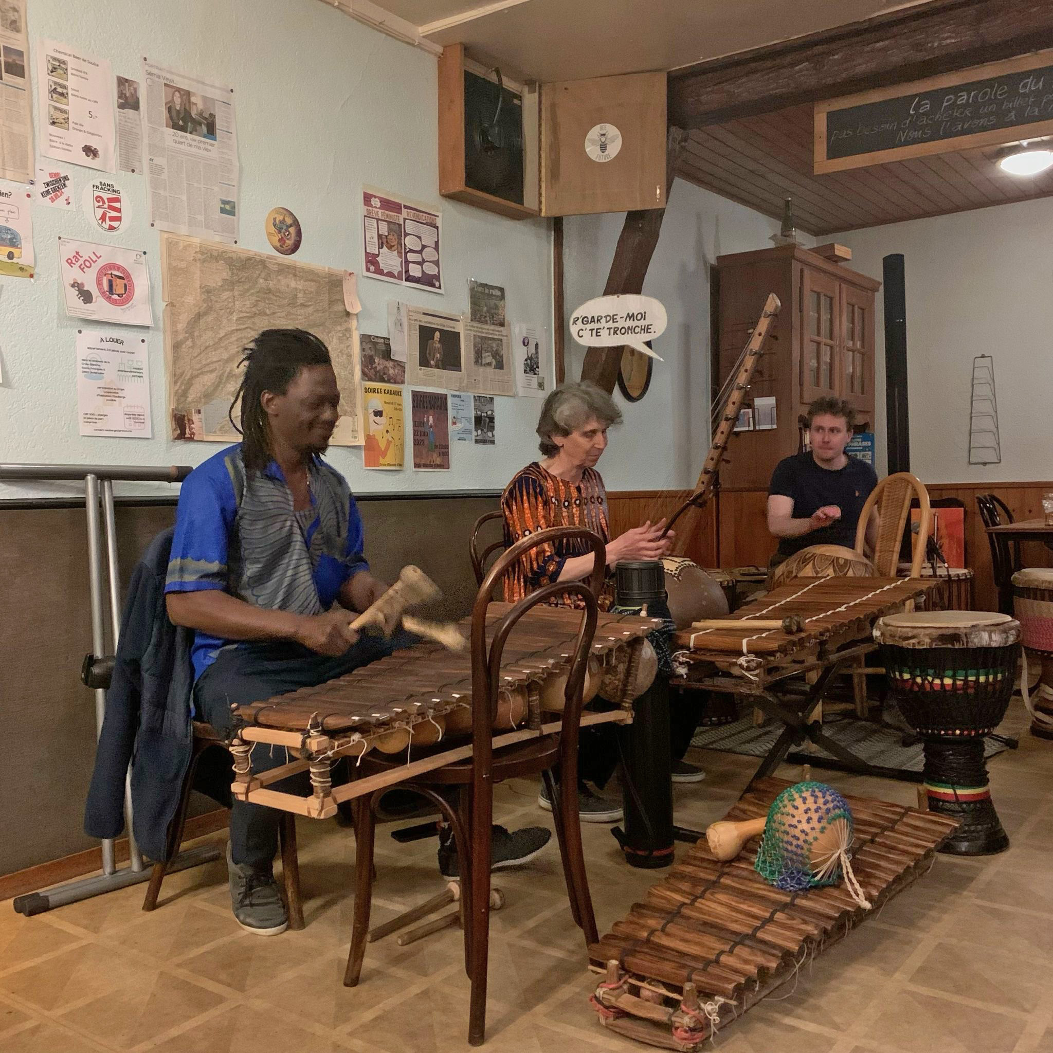 Im Centre in Biel, lernte ich schliesslich auch Dedou Sanogo kennen, der mir mit einzigartigem Engagement und Geduld das Balafonspiel beigebracht hat und mir einen Einblick in seine Welt, die Musik Tradition der Griot Burkina Fasos' eröffnet. Unterdessen sind das Balafon und das Ngoni diejenigen Instrumente geworden, die ich am meisten spiele, da sie Rhythmus, Melodie, Harmonik und Gesang in einem Instrument vebinden.